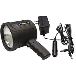 Rechargeable Cordless Spotlight 2 Million CP - Produces An Ultra Bright 2,000,000 Candlepower Beam Of Light. Ideal For Boating, Camping, Fishing and Many Other Activities. 100 Watt Halogen Bulb Provides 15 Minutes Of Continuous Light After Full Charge. The Spotlight Uses A Powerful 6V 4AH Battery Which Can Be Charged In A Vehicle With 12 Volt DC Car Charger Or With A 120 Volt AC Adapter. Comfortable Grip, Momentary Trigger Switch With Lock. Bulb Life: 1-2 Years. Charge Time Is 16 Hours If You Are Using Either The AC or DC Charger. Includes: Black Rechargeable Spotlight, Built In Battery, DC Charger, AC Charger and Operating Instructions.